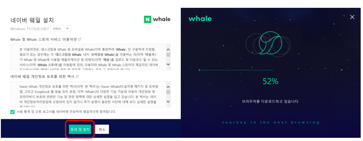 그리고 동의 및 설치를 누르시면 다운로드가 진행됩니다.