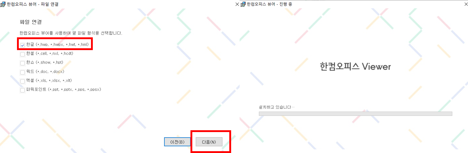 한글(hwp,hwpx, hwt, hml) 체크하시고 다음 누르시면 됩니다.