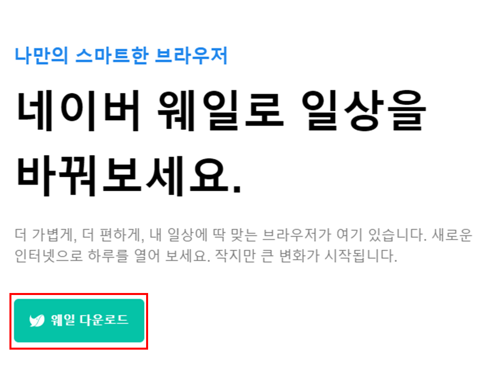 화면이 넘어가면 웨일 다운로드를 다시 눌러주세요.