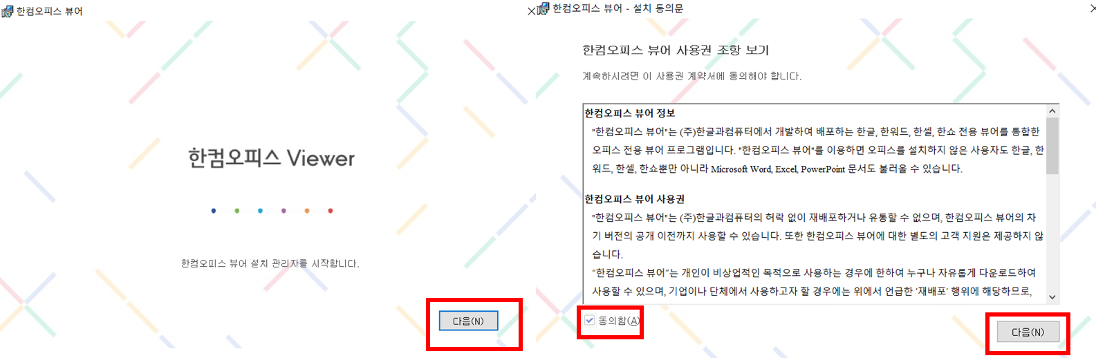 아래 사진처럼 다음 및 동의함 체크후 다음 눌러서 설치해주시면 됩니다.